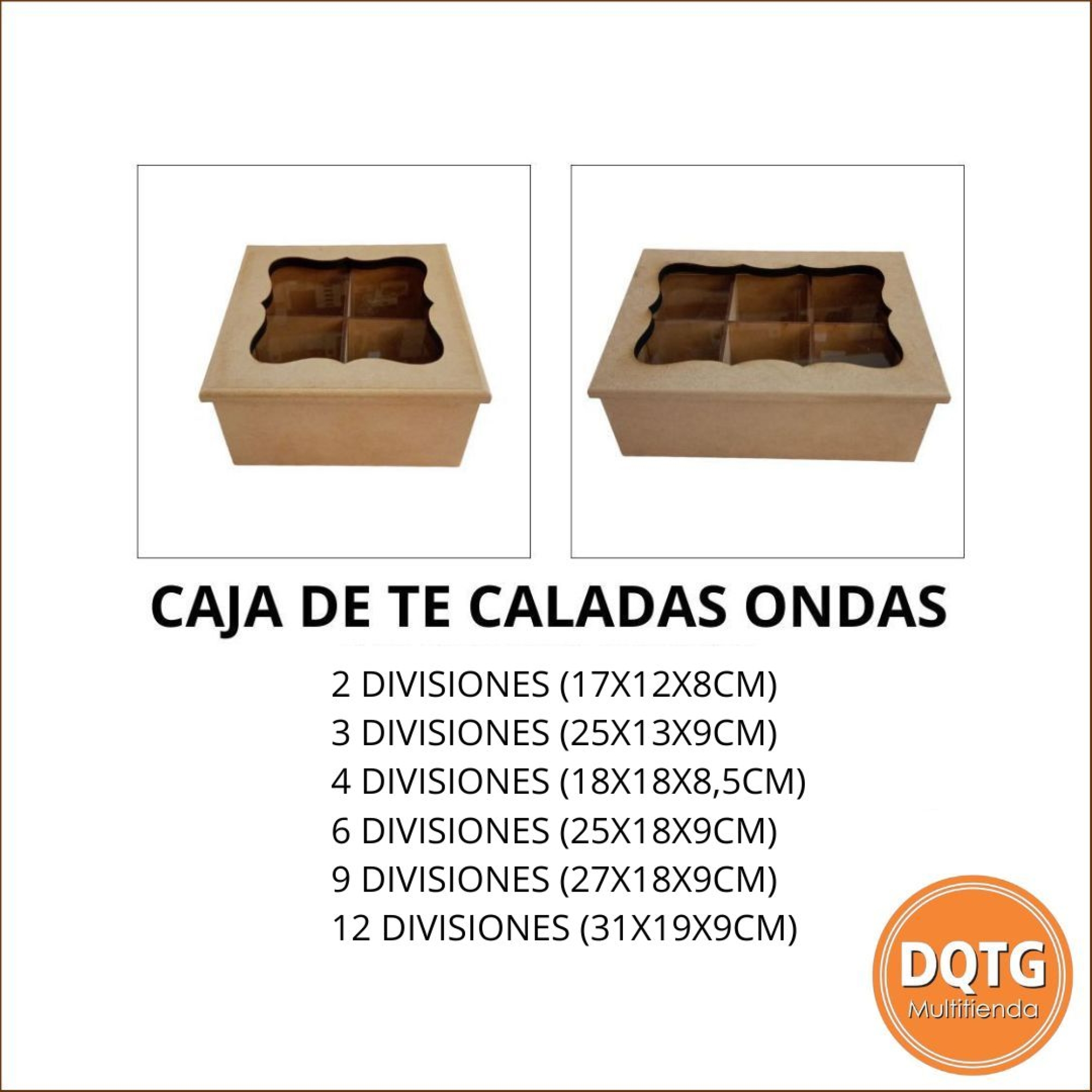 Cajas de te con tapa calada con vidrio.